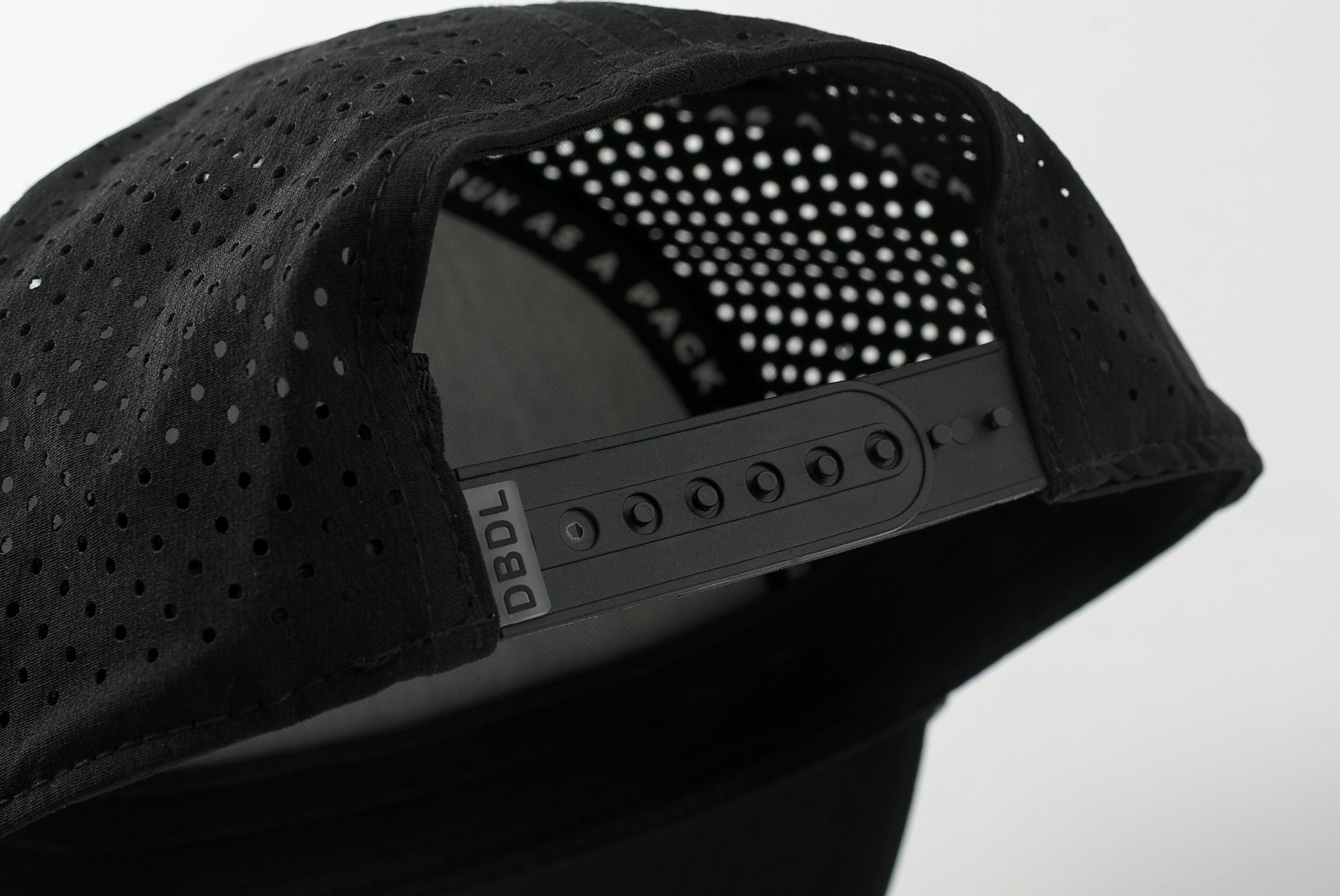 The DBDL Hat easily combines style with function with a laser-perforated, side-ventilation comfort polyester and spandex body, moisture-wicking polyester sweatband, and adjustable closing. The Birdie is breathable and stretchy and will keep you comfortable whether out on the golf course or working out at the gym.