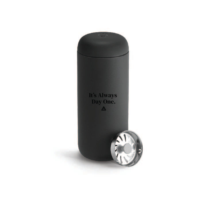 The Fellow Carter Slide Mug is a 16 oz travel mug that is made with heat-lock double wall vacuum insulated stainless steel. It has a leak-proof slide-lock lid and can keep drinks hot or cold for up to 6 hours. The mug has a uniquely angled lid that can be opened with the flick of a thumb. It also has an inner ceramic coating that helps keep coffee tasting like coffee.